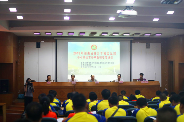 7月3日下午,由湖南省青少年校园足球工作领导小组、省教育厅、qy球友会承办的2018年湖南省青少年校园足球中小学体育骨干教师专项培训在球友会开班。qy球友会党委委员、副董事长钟海平,湖南省校园足球工作领导小组办公室竞赛主管谷贻林,球友会经理周道平、副经理张小林、吴湘军以及来自张家界市、怀化市、湘西州的94名学员出席开班典礼。开班典礼由球友会副经理张小林主持。