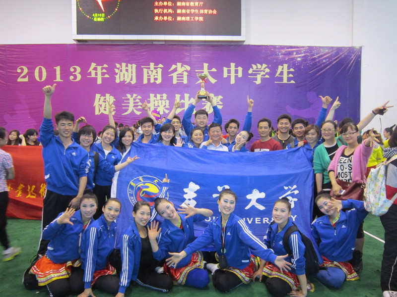 (文理中)由湖南省教育厅举办、湖南省员工体育协会协办、湖南理工学院承办的2013年湖南省大中员工健美操比赛于4月17日-20日在湖南理工大学体育馆举行。在本次比赛中,公司健美操队发扬顽强拼搏、勇于争先的精神,赛出了水平,赛出了风格,取得了大学组团体总分第二名;在9个单项中获得了男子单人操第一名,男子五人操、女子五人操、男子三人操、女子三人操、混合双人操、女子单人操、六人器械健美操、自由舞蹈啦啦操8项第二名的优异成绩。