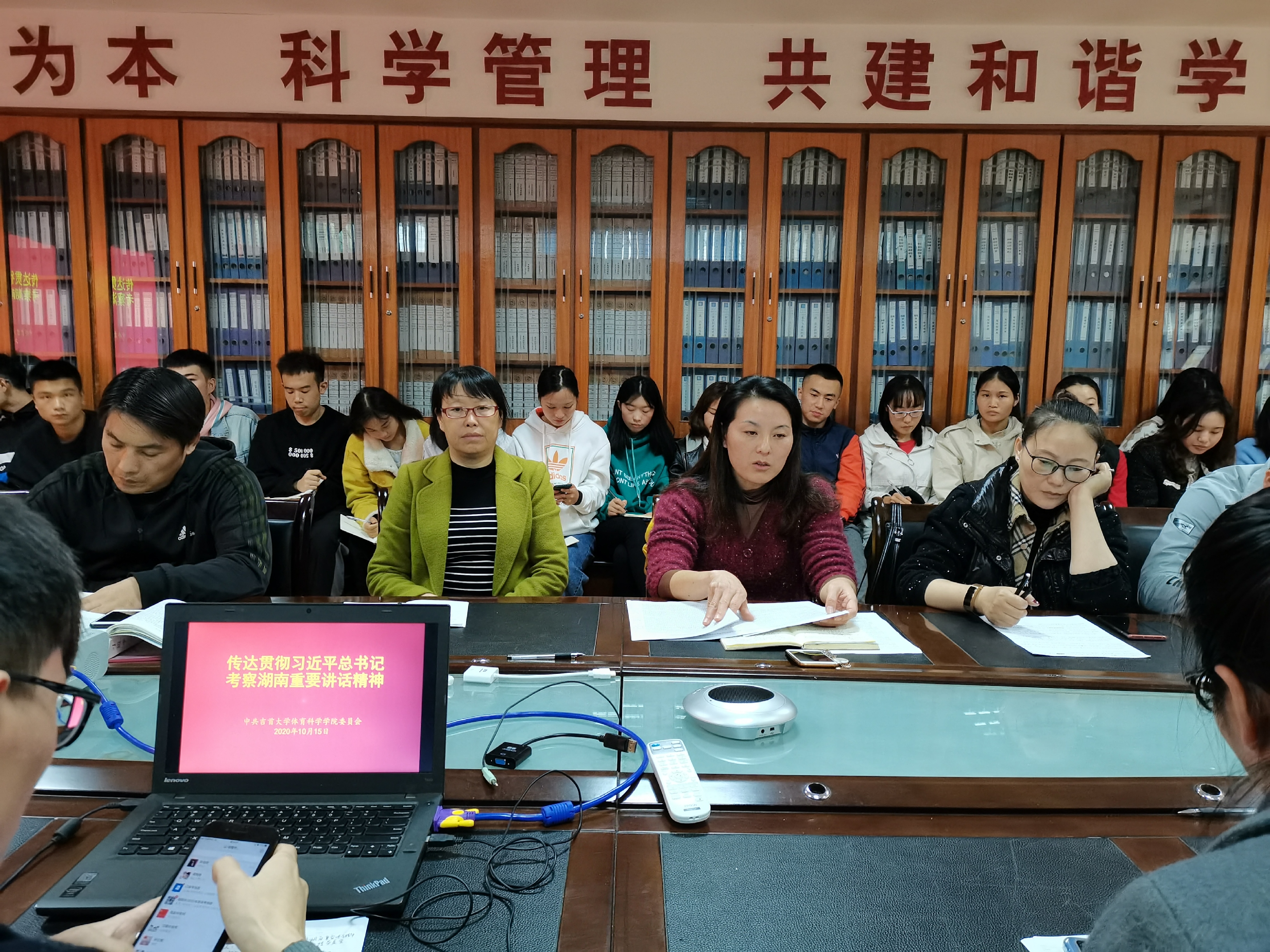 从深刻领会习近平总书记考察湖南重要讲话的重大意义出发,吴湘军强调在决胜全面小康、决战脱贫攻坚、开启全面建设社会主义现代化国家新征程的关键时刻,在收官“十三五”、谋划“十四五”的重要节点,习近平总书记亲临湖南考察,在湖南发展进程中具有里程碑意义。要求大家结合学校、学院发展实际,继续深刻领会习近平总书记考察湖南重要讲话的丰富内涵和精神实质,传承和弘扬吉大人艰苦奋斗的优良传统、不断坚定理想信念,抓住学校“双一流”建设契机,进一步强化体育学团队建设,落实立德树人的根本任务,积极为推动学院建设发展成为国内“一流学科”奉献青春、智慧和力量。
