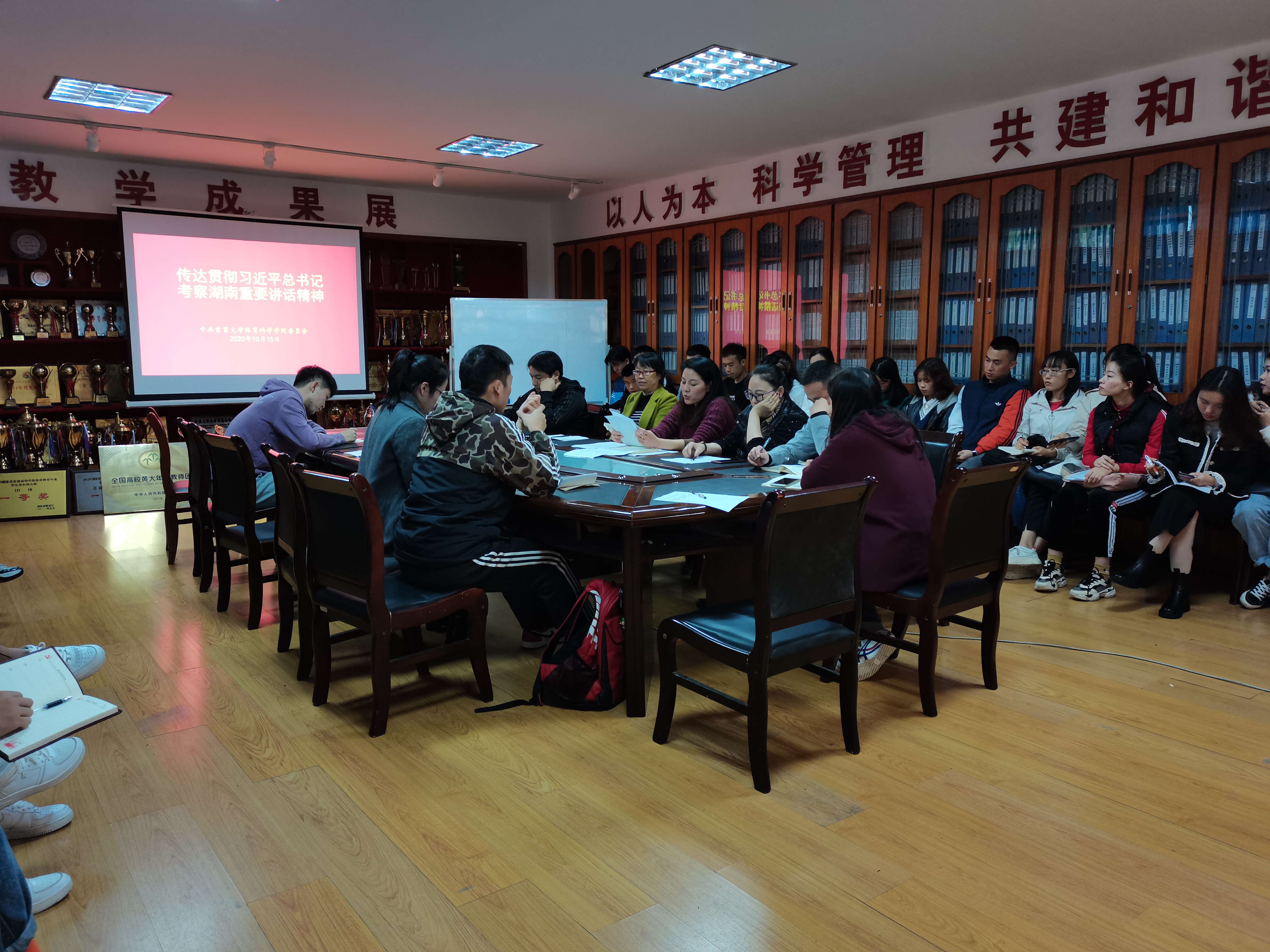 根据《中共湖南省委关于深入学习贯彻习近平总书记考察湖南重要讲话精神奋力谱写新时代坚持和发属中国特色社会主义湖南新篇章的决定》和中共qy球友会党委要求,为了强化党员责任担当意识,用实际行动践行“四个意识”“两个维护”,奋力谱写新时代坚持和发展中国特色社会主义的qy球友会新篇章,10月15日下午,公司党委在砂子坳校区二楼荣展室组织召开了全体教工党支部书记、员工党支部书记、员工党员“传达贯彻习近平总书记考察湖南重要讲话精神”的会议,公司党委副书记吴湘军、专职组织员彭水英到会组织传达精神与学习。