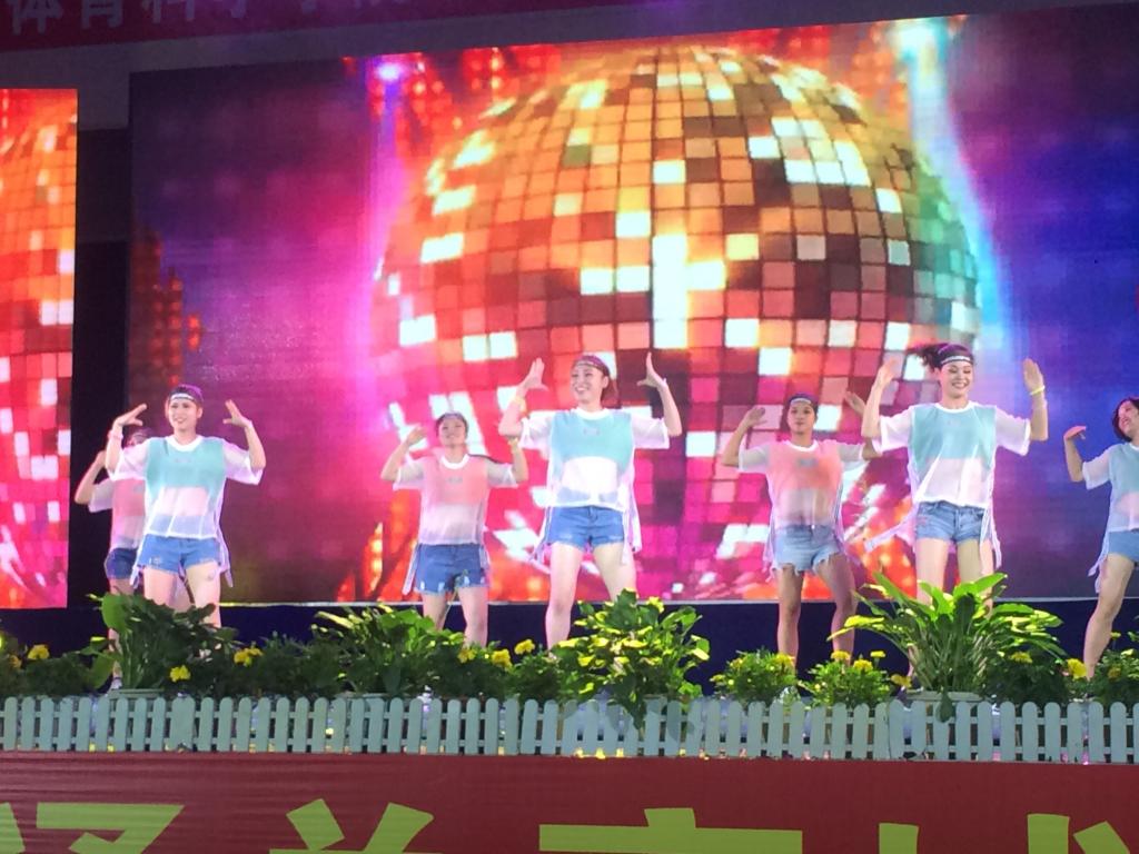即彰显艺术色彩也充分体现公司专业特色和专业能力的健美操、体育舞蹈、武术刀枪对打、龙狮表演和展示当代体育专业员工风采和才艺的歌舞表演赢得了现场观众阵阵热烈的掌声和呐喊。整个表演持续了120分钟。