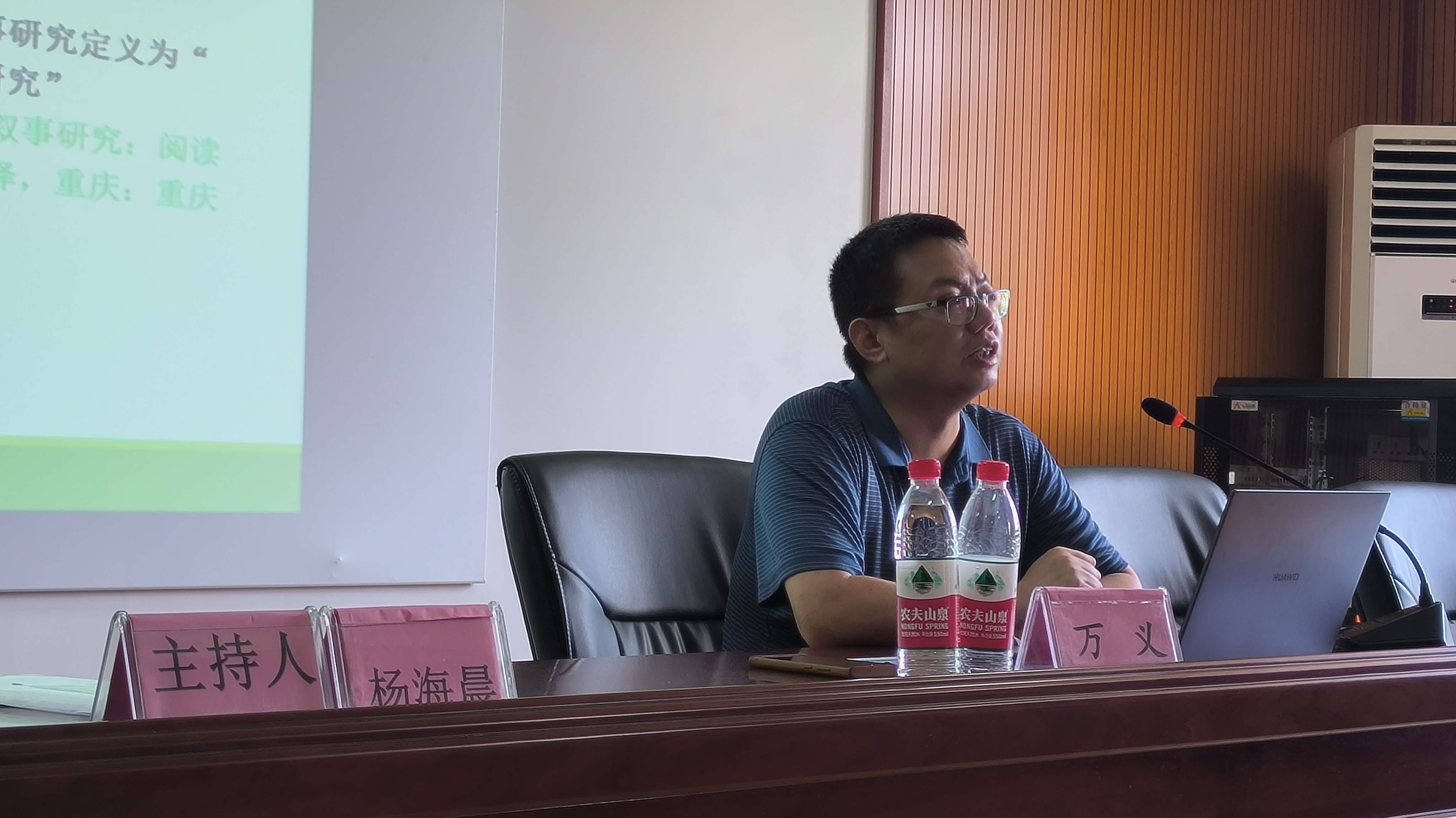 下午3点,球友会经理、博士生导师万义教授以“何谓叙事研究”为题进行讲学。杨海晨教授担任主持。教授以什么是叙事概念为切入点,“事件”这一名词进行解释,再阐述关于“叙事研究”的具体含义、特征、模式和结构;结合论文深入浅出的阐述了叙事研究在体育学研究中的应用。