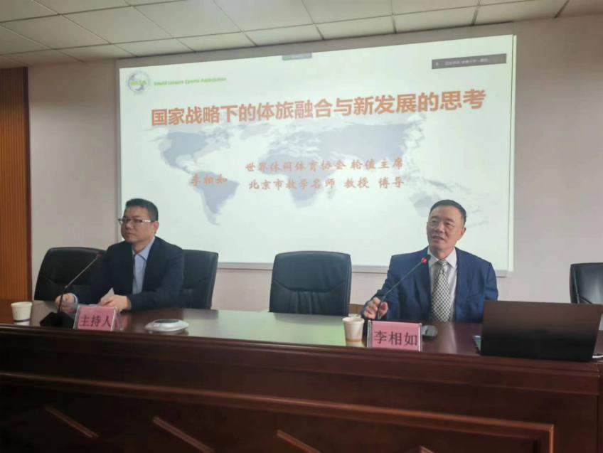 本网讯(通讯员 肖永祥 覃英报道)2023年4月12日上午,首都体育学院李相如教授主讲的“国家战略下的体旅融合与新发展的思考”专题讲座在qy球友会总理楼三楼体育学院大会议室举行,整个活动由万义经理主持,公司有关领导和全体在校博士研究生、硕士研究生出席了本次专题讲座。