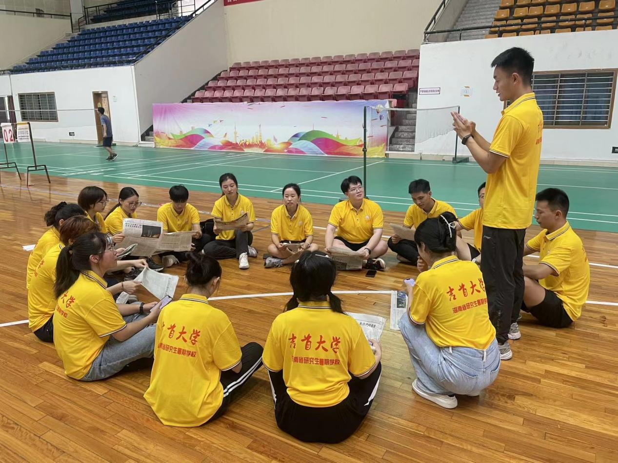 7月20日下午,本次暑期学校成功开展了一场精彩纷呈的团队建设活动。本次活动由黄文辉老师带领,旨在促进学员之间的团结合作与友谊。活动中,同学们按照事先分组,设计并展示了自己的队名、口号、logo以及表演队形,展现了出色的创意和团队合作精神。经过紧张的20分钟排练,在黄文辉老师的引领下,同学们分别进行了“不倒森林”“水到渠成”和“同心鼓”的练习。五个队伍轮番上阵,进行了紧张精彩的趣味游戏比赛。舞台上,每个队伍都展现出了无比的热情和才华,彰显了各自团队的特色和实力。