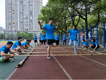 上午9点,第一大组在龙佩琳教授的指导下进行荡秋千的学习,与此同时,第二大组学员则在朱晓红教授的带领下投入到竹竿舞的学习之中。龙佩林教授先从荡秋千的起源讲起,以时间脉络梳理其发展历程,将秋千的形制、特点一一道来。不仅如此,他还从运动生物力学的角度,引领学员深入剖析荡秋千的力学原理。在学员们掌握了科学的理论基础后,龙佩林教授又带着大家学习荡秋千的技术和比赛规则,并通过教学实践,让学员对荡秋千技术有了更为深刻的理解。课程结束时,龙佩林教授向学员们抛出了“荡秋千技术中上下肢肌群的用力特点”这一思考问题,这将有力地推动学员对荡秋千技术的进一步思考和后续学习。朱晓红老师先是介绍了竹竿舞的起源与发展历程,接着向学员提出“竹竿舞现代价值及推广启示”这一思考问题,然后对竹竿舞诸如“平敲”“提敲”等技术展开全面教学,引领学员逐步掌握竹竿舞的4拍节奏和跳竿时机。此外,朱晓红教授还进行了竹竿舞教法的相关讲解,以便学员未来在工作岗位上能够顺利开展竹竿舞的教学。在当日下午,两个大组的学员进行互换,并在结束后相互探讨交流。