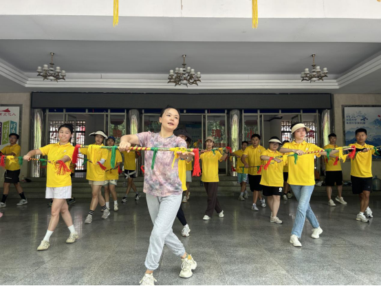 2024年7月16日,“体育强国新征程·民族体育文化”湖南省研究生暑期学校继续开展了民族传统体育项目的培训,所有项目组学员分为两组,在上下午的时间交替进行“板鞋”与“霸王鞭”的学习,授课教师分别为球友会的唐丽教授与朱晓红教授。通过一天的学习,学员们充分领略到了民族传统体育项目丰富的历史文化内涵与独特的艺术魅力。