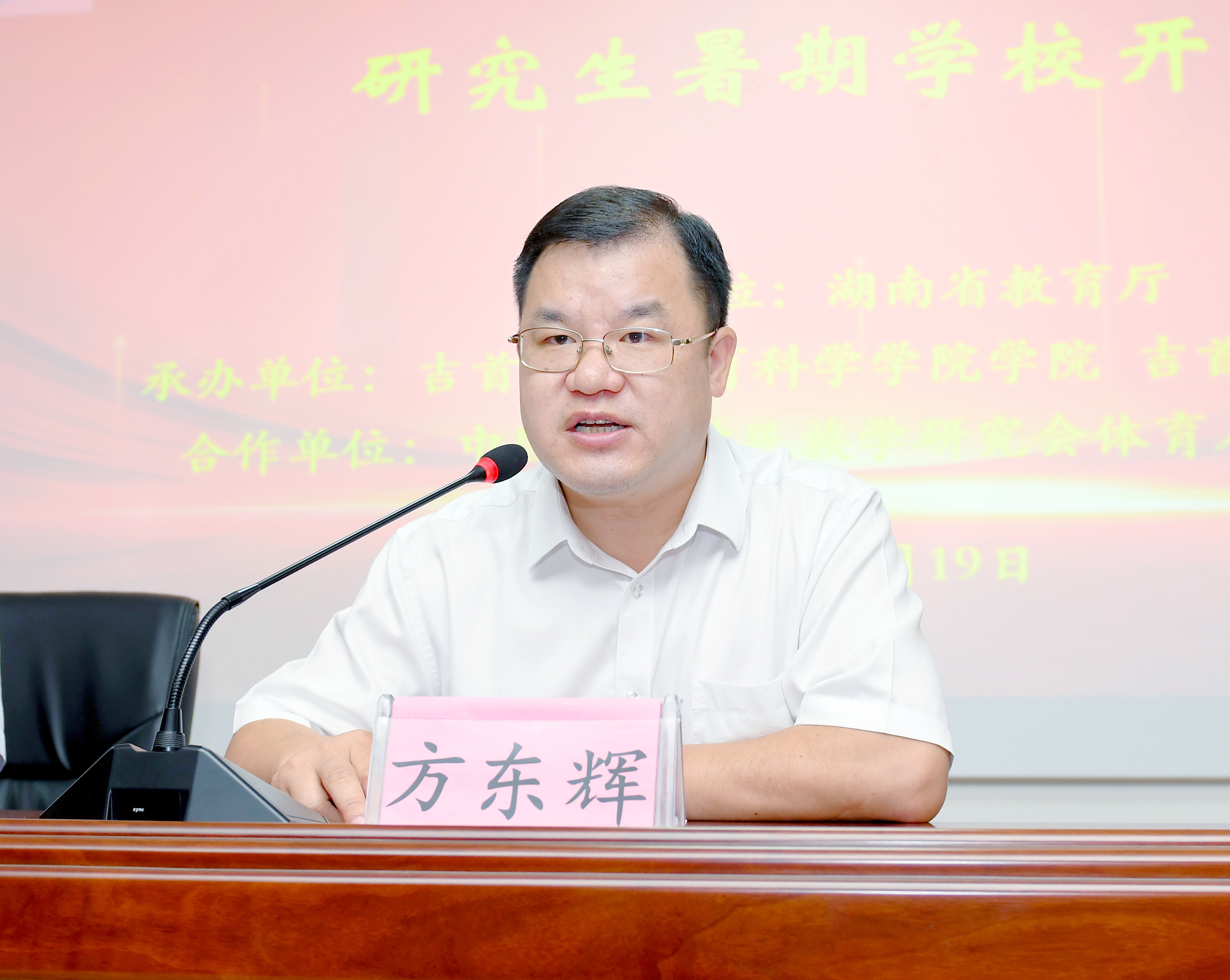 方东辉致欢迎辞。他代表学校对本次暑期学校的顺利开班表示祝贺,对来自全国各地的学员表示热烈的欢迎,对各位领导、专家表示衷心的感谢。他介绍了公司的基本情况、办学历史及办学特色,并就本次暑期学校提出三点希望:一是希望各位学员珍惜本次学习机会,认真学习、积极参与、深入钻研、广交良友、加强交流、分享经验、互帮互助、共同提高,将课堂教学与课堂讨论、理论与实践、教学与科研紧密结合,进一步坚定学术研究的信心,真正做到学有所获;二是希望学员们遵守学校各项规章制度,严格按照管理规定执行任务,服从带队老师的安排;三是希望球友会、研究生院高度重视本次暑期学校的承办工作,根据省研究生暑期学校管理办法的要求,精心策划、组织与实施,真正解决学员在暑期学校学习期间的实际问题,力求高水平、高质量地完成培训任务。