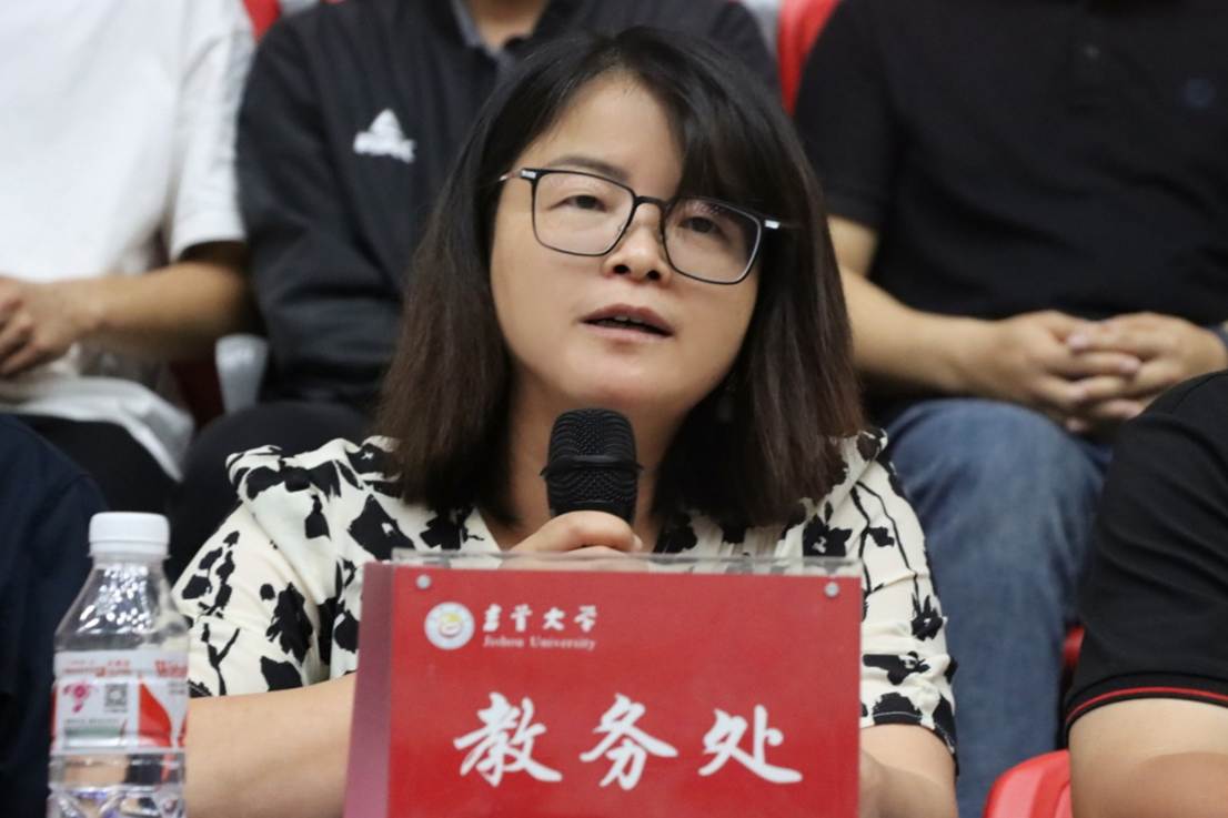 谌晓安在致辞中向全体参赛运动员、裁判员及工作人员致以诚挚感谢。回顾赛事历程时,她高度赞扬了运动员们以拼搏诠释热爱、以团结展现风采的体育精神。并指出,本届联赛既展现青春风采,又凝聚团队力量,以体育为桥梁促进各学院交流合作。此外,她鼓励学子们将赛场上的拼搏精神融入日常学习生活,以强健体魄和卓越品格迎接未来挑战。