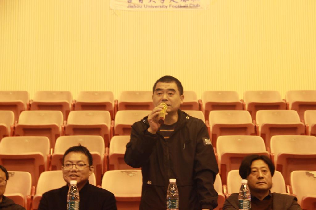 图四 党委书记肖松宣布qy球友会首届“新生杯”足球赛闭幕(付常顺摄)