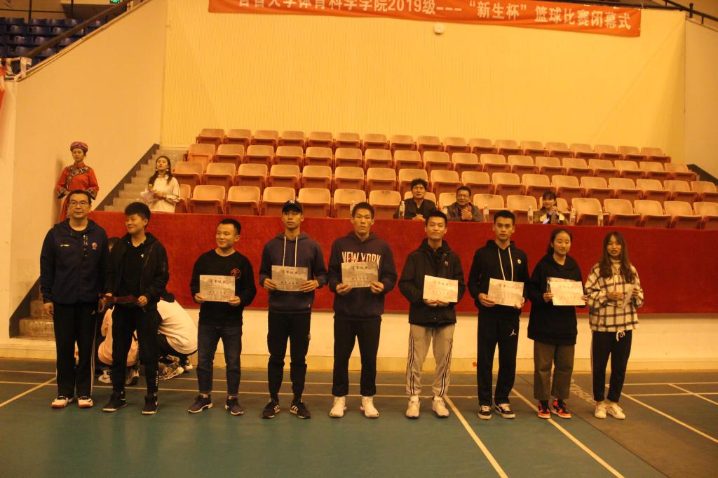 马志军老师宣布获奖名单,宋晓东、唐洪谊等9名同学获得本次比赛优秀裁判员称号;罗佳、秧兴莲、李栋等8名同学获得本次优秀运动员称号;万义副经理为本次篮球赛19级体教二班和17级女子联队荣获第一名;19级体教五班与2019级女子联队荣获第二名;19级体教三班和18级女子联队荣获第三名;19级民传班和19级体教六班荣获优胜奖,在场领导及老师为获奖人员颁奖,并对获奖同学与获奖班级致以热烈的掌声。