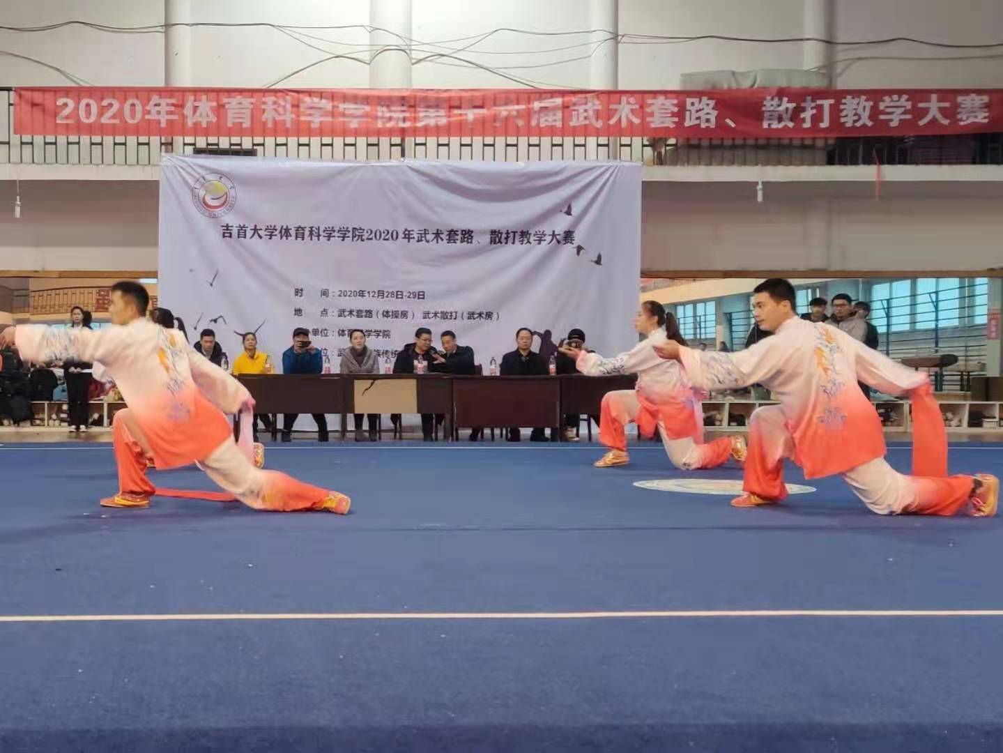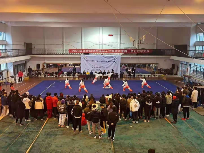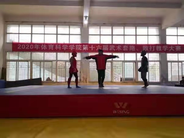 (通讯员:余坷)为进一步促进武术课程教学的改革与实践,落实学校课程教学改革方案,提升员工的教师教育素养和武术、散打项目教学水平,公司于12月28日上午在综合馆体操房展开了2020年武术套路、散打教学比赛,莅临比赛现场的领导老师有党委副书记吴湘军、副经理万义、武术与民族传统体育系主任陆盛华老师,武术与民族传统教研室主任刘卫华老师,武术与民族传统教研室郭振华老师、李培雄老师、彭友老师、袁安发老师,教务办王月英老师以及来自2018级体教班和民传班、2019、2020级民传班的同学们。