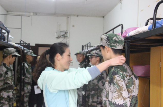 图一吴书记为新生整理着装(付常顺 拍摄)