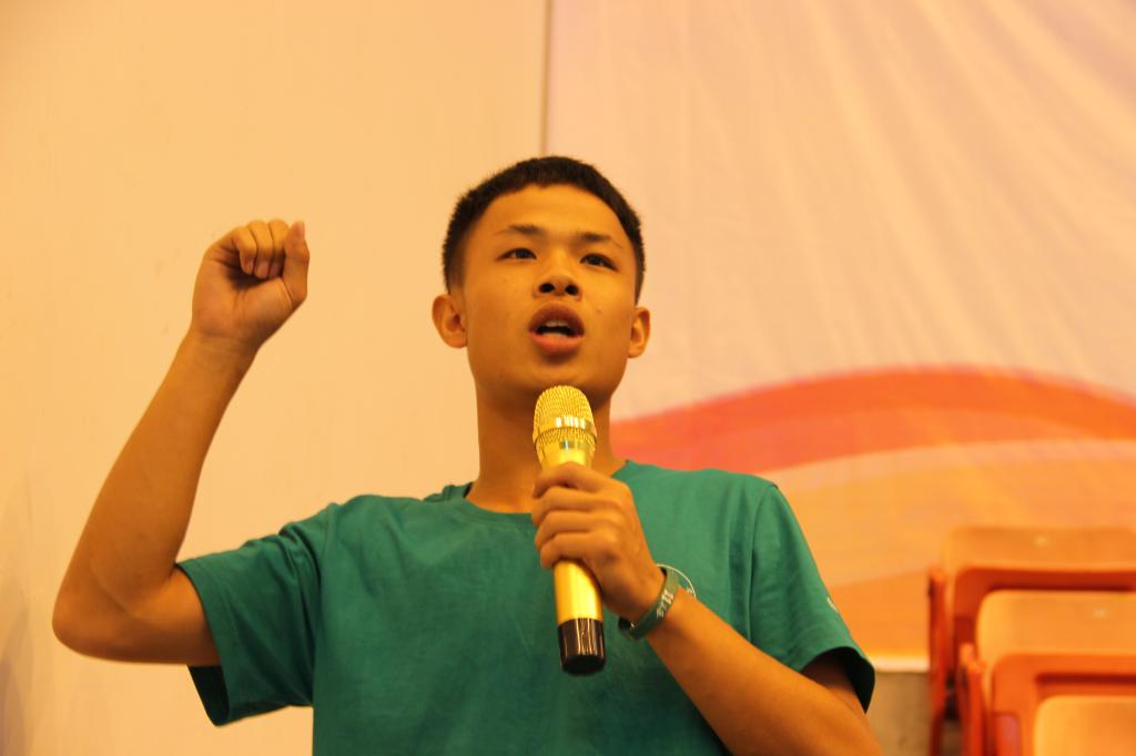 参赛选手代表刘腾予宣誓。他将严格遵守赛事安排,遵守比赛规则和赛场纪律,尊重对手,尊重观众,尊重裁判,以良好的精神面貌赛出风格,赛出水平。