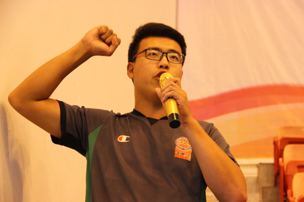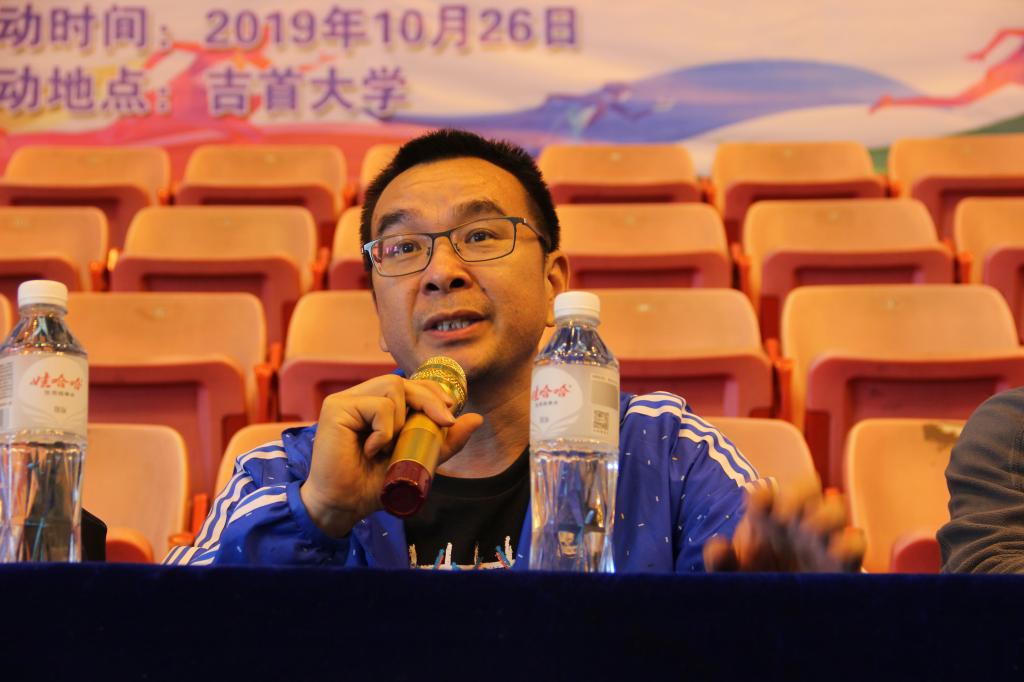 肖松书记宣布球友会2019级“新生杯”篮球赛正式开幕。