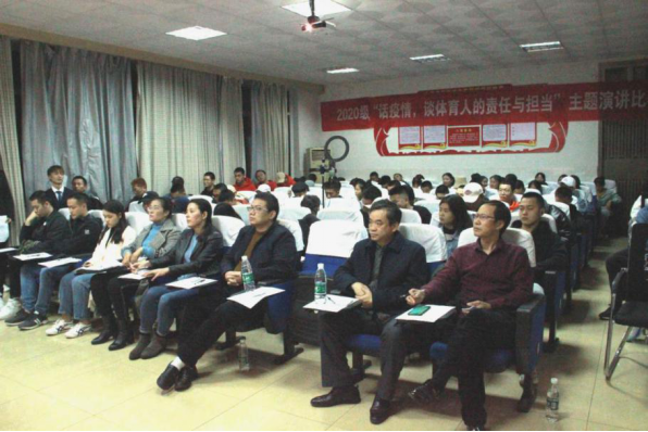 (通讯员:刘杨乐)为激发员工明确防控疫情的重要性,丰富校园生活,锻炼员工能力,增强学术气氛,10月18日晚,在公司三楼多媒体教室举行“话疫情,谈体育文化人的责任与担当”主题演讲比赛。莅临本次活动的领导老师有党委副书记吴湘军,副经理万义,人文教研室张天成教授,唐君玲老师,胡建文老师,及学工办的辅导员老师们。本次比赛由刘阳、侯添浩主持。