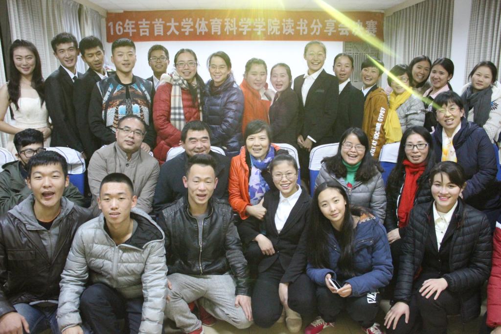 (本网讯:陈宝玉、朱嘉欣)11月29日19:00,“读书分享会”决赛于公司院三楼举办。出席本次比赛的领导有体委副主任刘少英老师,公司党委书记肖松老师,公司党委副书记吴永海老师,院工会主席、公司党委委员石红老师,运动人体科学教研室主任谌晓安教授,教研室陈玉凤教授、张福兰副教授、唐丽副教授、陈景副教授,学工办主任宁珊珊老师,辅导员彭友老师,辅导员助理于芝芝老师。