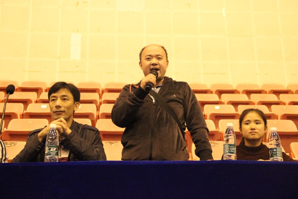 首先,张小林老师致开幕辞,他对此次篮球赛的开展给予了肯定,对参加球赛的各队寄予了厚望,希望此次篮球赛能展现运动员的激情,赛出风格赛出水平,并预祝此次比赛圆满成功。随后,裁判员代表王思成宣誓,表示会严格秉承“公平、公正、公开”的工作原则,认真对待每场比赛,运动员代表王纯埔宣誓,喊出“友谊第一,比赛第二”的口号。最后由彭友老师宣布篮球比赛正式开幕。