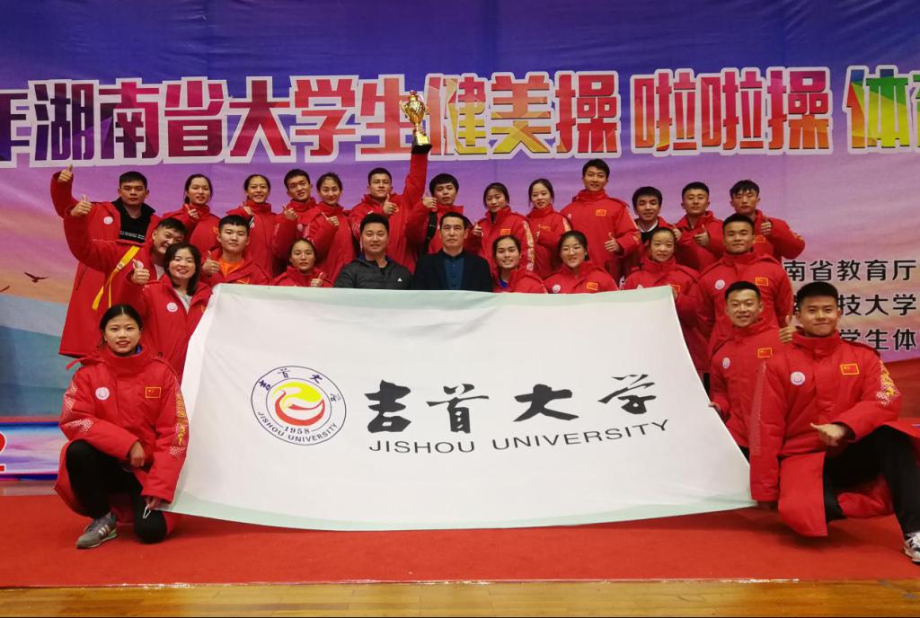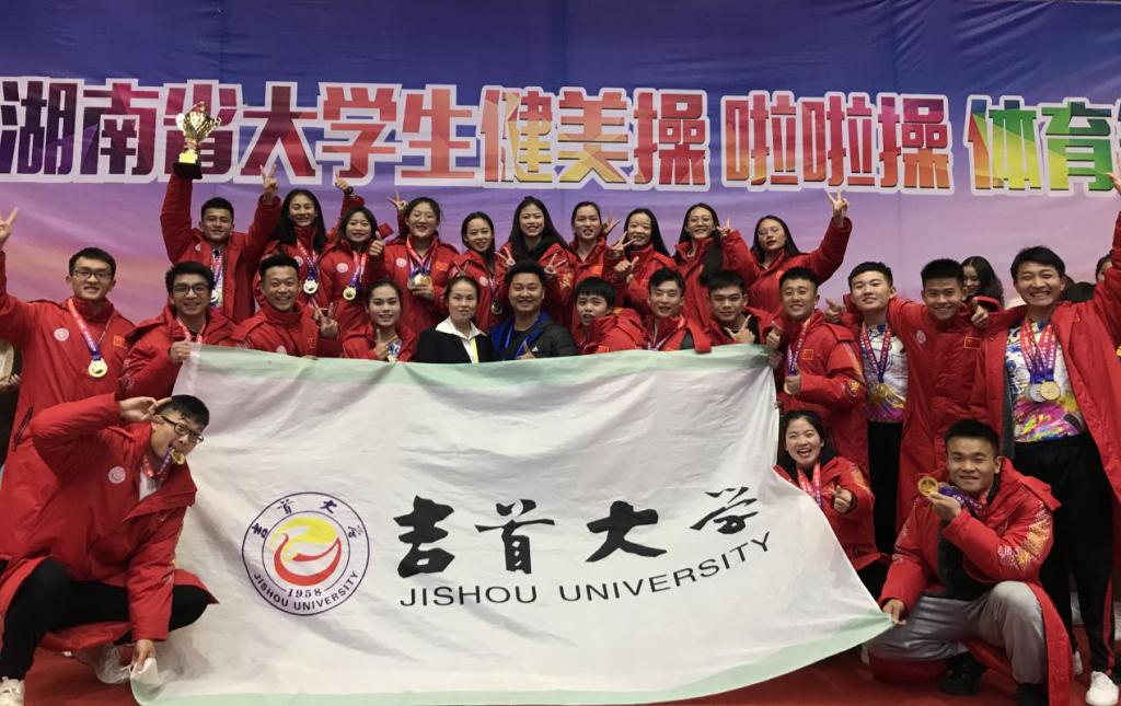 本网讯(文理中)11月18日—22日,由湖南省教育厅举办的2019年湖南省老员工健美操比赛在湖南科技大学隆重举行。经过5天的激烈比赛,qy球友会代表队发扬顽强拼搏、勇于争先的精神,在参加大学组的7个项目比赛中,荣获技巧啦啦操、街舞啦啦操和男子三人操3项第一名;女子五人操、男子五人操和混合五人操2项第二名;花球啦啦操1项第三名和大学组团体总分第三名的优异成绩。