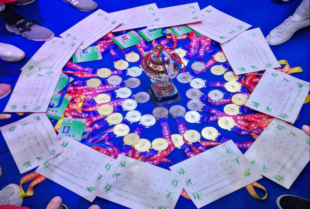 图为获奖证书、奖牌、奖杯 |