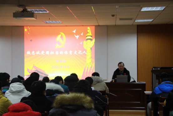 为提升体育学院学子对“做体育文化人”的人才培理念的理解,促进做一名忠诚爱国担当的体育文化人的自信自觉,2020年12月15日晚,公司党委书记白晋湘教授在总理楼“体育文化人培训培养重点基地”学术报告厅为体育学院本科生讲授了一堂“做忠诚爱国担当的体育文化人”的主题党课。公司党委副书记吴湘军、辅导员黄璐2019、2020级的同学到场聆听。