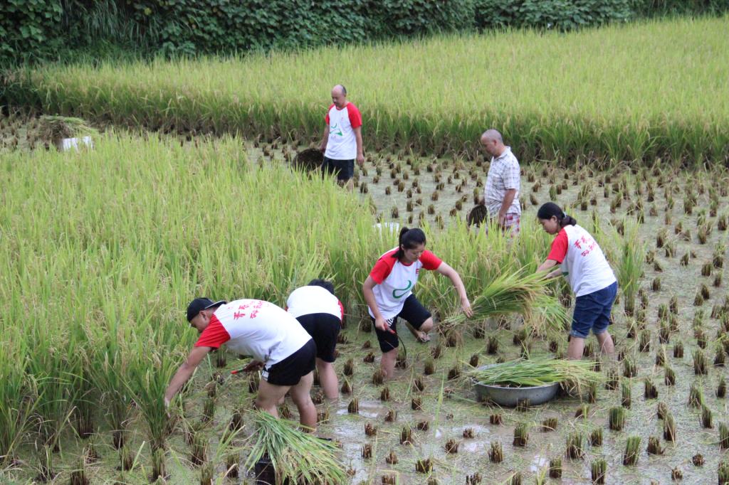 图一 志愿者们帮助村民收割稻谷