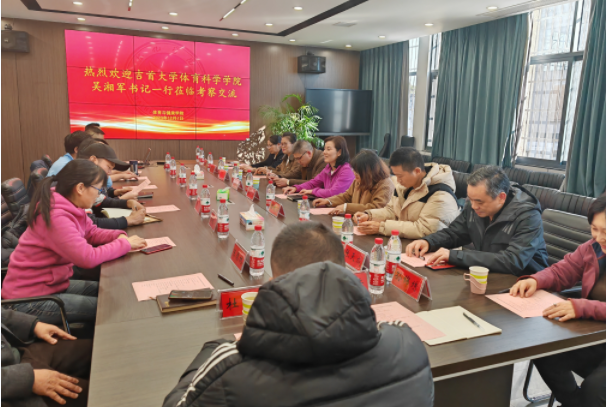 为更好地适应当前体育课程教学改革,提升体育专业员工核心素养,提高体育教育专业基本功大赛的理论比赛成绩,本着向兄弟院校取长补短、互相学习的精神,共同为武陵山区共同培育更多更优秀人才的目的,qy球友会公司党委书记吴湘军教授带领体育人文教研室和运动人体教研室一行11人,于2023年12月7日前往怀化学院体育与健康学院就党务龚工作、思政教育、员工管理、理论课程教学等方面工作进行学习交流。