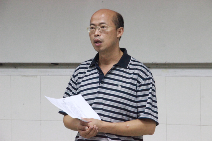 党委副书记吴永海代表学院欢迎2017级新生来到球友会,他从学习、纪律、做人等方面对新生们提出了具体要求。并指出2017级的新生们在今后的大学四年里中要多读书、多写作、苦练专业、遵守纪律。