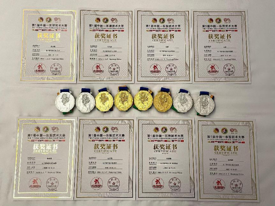 qy球友会代表队选派了4名(3男、1女)运动员参加此次赛事,由球友会万义经理任领队,陆盛华、袁安发老师任教练员。经过为期六天的激烈争夺,公司武术队发扬吃苦耐劳、团结奋进、顽强拼搏的精神,最终获得4金4银。