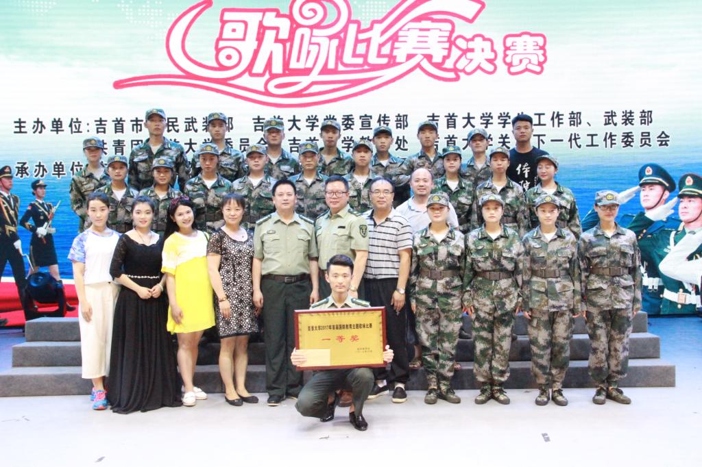 本网讯(于敏)为纪念中国人民解放军建军90周年,将“赞颂辉煌成就,庚续红色基因,支持改革强军”主题教育活动推向深入,增强当代老员工热爱祖国、热爱军队、关心国防、保卫国防的使命意识,激发广大在校员工投身军营、崇军报国的热情。学校于6月18日下午3:00点在砂子坳校区民族音乐舞蹈表演实验剧场举办了qy球友会、吉首市人民武装部首届“军歌传唱.爱我国防”国防教育主题歌咏比赛的总决赛。出席本次比赛的领导有qy球友会党委书记游俊,湘西州委常委、吉首军分区司令员刘长进,qy球友会党委委员、纪委书记赵鹤平,qy球友会党委委员、财务处处长张兰芳以及州市军分区、武装部、武警支队主要领导,学校各职能部门和学院负责人。