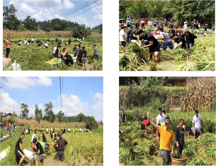 随后同学们分小组进行帮农务农活动,大家换好合适的衣服,卷起裤脚,集体下地。因为是山区稻田,所以同学们需要采用比较原始的的方式进行收割,打谷。田间六十多个人团结合作热闹非凡,这一景象也引得附近村民前来围观。同时收割之余同学们也体验了一把原滋原味的抓稻花鱼乐趣。整个麦坪村环绕着球友会师生们和老百姓一起体验丰收的欢声笑语。