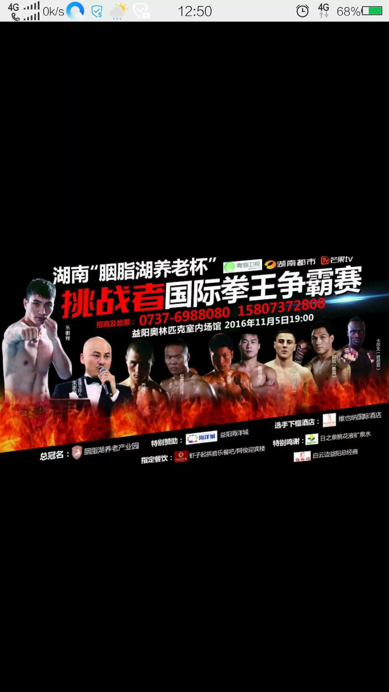 2016中国湖南(益阳)挑战者国际拳王争霸赛。2016年11月5日晚八点,将在湖南益阳奥体中心打响,球友会,2014级民传班员工乐鹏辉,自2014年年底和2015年年底代表中国战胜泰国拳王瑟亚帕和日本拳王渡边功后,将再次代表中国挑战俄罗斯大力士,为乐鹏辉加油,为中国勇士加油,乐鹏辉体育学院将以你为荣。