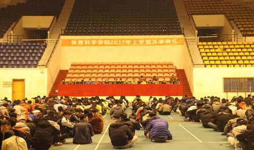 本网讯(彭友、朱坤报道)2月19日7:00在qy球友会砂子坳校区新体育馆举行了2017年春季球友会开学典礼。会议由公司党委书记肖松主持,出席开学典礼的领导有周道平经理,吴永海副书记,张小林副经理,吴湘军副经理及教务办主任王月英,学工办主任宁珊珊,辅导员彭友和各年级班主任。
