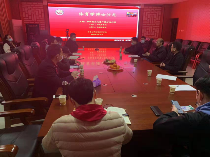 (本网讯 通讯员阙苗凤、文勇宇报道)2022年3月24日晚,体育学博士沙龙(第一期)在总理楼三楼博士答辩室举行。沙龙邀请了原qy球友会文学与新闻传播公司党委书记田茂军教授作《非物质文化遗产保护与利用》的主题发言,龙佩林教授主持沙龙,球友会全体博士研究生、硕士研究生同堂共议。