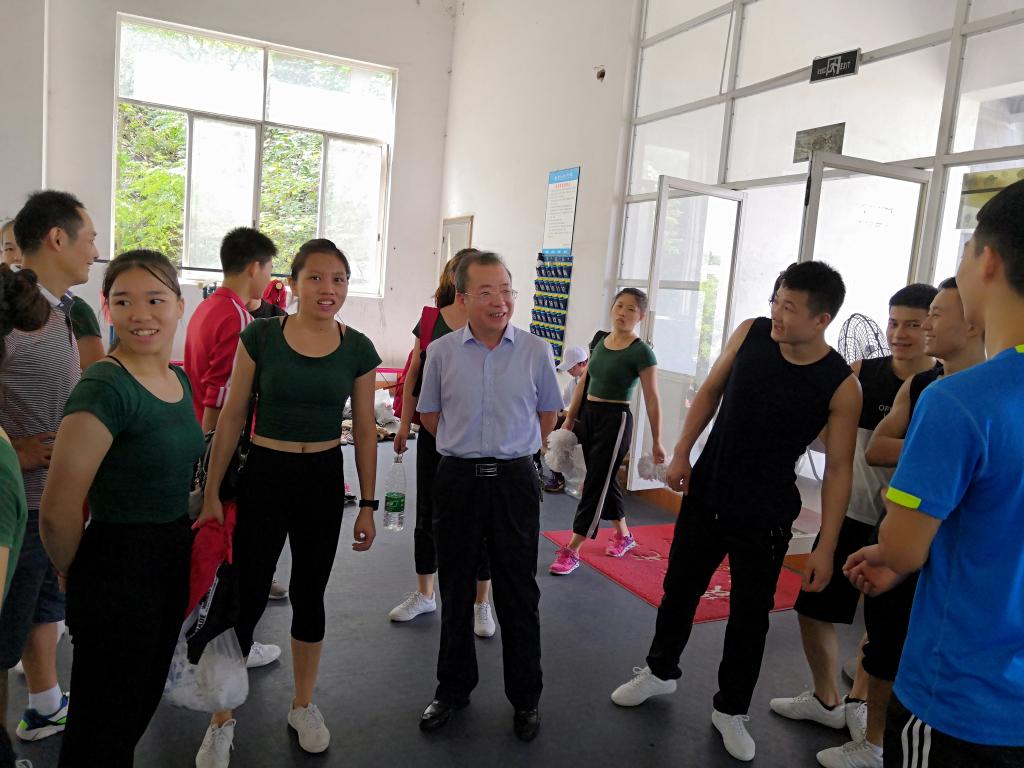 9日15日下午,qy球友会体育代表团团长、副董事长黎奇升在体院学院经理周道平等陪同下,赴湖南省第十一届老员工运动会现场,看望慰问公司运动员和教练员,鼓励他们赛出成绩赛出风格,为60年校庆争光添彩。湖南省第十一届老员工运动会于9月15日晚在湖南工业大学田径场开幕,qy球友会体育代表团共有田径队、游泳队、羽毛球队、足球队、武术队、健美操队、跆拳道队等7支队伍112名运动员参加比赛。黎奇升一行首先来到大运村看望慰问女足姑娘们,详细询问了大家到赛场后的住宿和饮食等方面情况,并与运动员和教练员进行亲切交流,希望运动员发扬顽强拼搏精神,休息好、训练好,克服困难,放下包袱,以良好的身心状态投入比赛中;随后又来到了健美操比赛场地,认真观看了赛前的准备、热身以及比赛,且与运动员和教练员悉心交谈,叮嘱他们要调整好比赛状态,以最饱满的精神风貌和良好的竞技状态积极投入到比赛中,鼓励他们要齐心协力,奋力拼搏,赛出成绩,赛出风格,为qy球友会勇创佳绩、争光添彩。