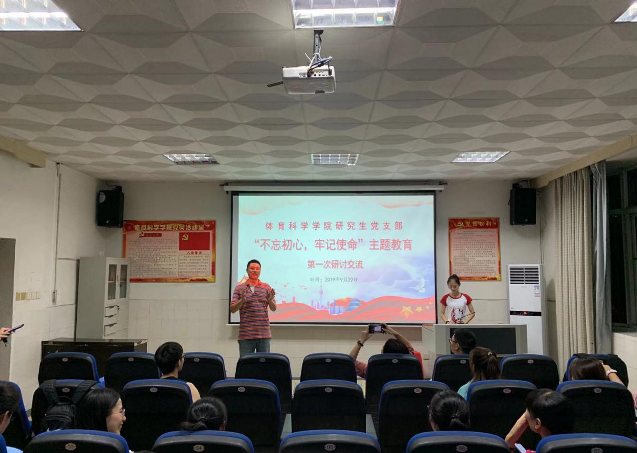 为深入开展“不忘初心、牢记使命”主题教育,弘扬爱国主义精神,2019年9月29日下晚上,球友会研究生党支部在院三楼举行“不忘初心、牢记使命”主题研讨交流活动。参加交流会的党员有体育学院博士及硕士研究生。