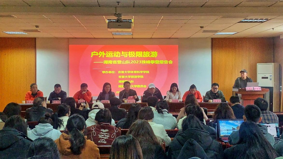 (通讯员罗湘豫 闫玲凤 报道)为全面贯彻习近平新时代中国特色社会主义思想,深化研究生思政教育,落实一月一片一课一实践活动开展,提升体育学科研究生人才培养质量。2024年3月16日,由qy球友会体育科学学、qy球友会旅游学院、湖南省登山队、民盟湘西州委员会联合举办的《户外运动与极限旅游——湖南省登山队2023珠峰攀登报告会》在球友会“体育文化人培训培养重点基地”举行。出席报告会的领导、嘉宾有公司党委书记吴湘军教授、球友会经理万义教授、旅游学院经理鲁明勇教授、湖南省登山队徐江雷、谢如祥、刘秋成、刘杨、阳燚、廖武军、湘西州民盟委员会秘书长樊神木以及部分教师和员工到会聆听报告。鲁明勇教授主持报告会。