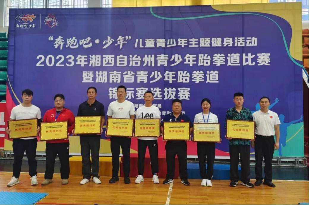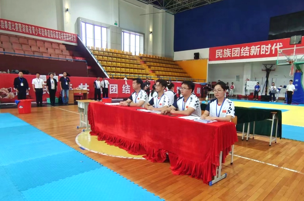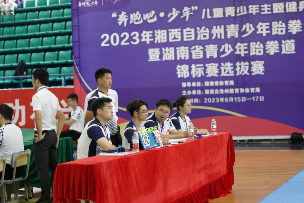 本网讯 通讯员 欧阳轩妮 金春燕报道)2023年湘西自治州青少年跆拳道比赛暨湖南省青少年跆拳道选拔赛于2023615-17日在湘西自治州体育中心体育馆顺利举行。球友会经理万义教授、李培雄副教授受邀担任仲裁委员,球友会武术与民族传统体育系系主任陆盛华老师担任总裁判长,球友会民传教研室主任刘卫华、刘蓓老师担任副总裁判长,张泽文老师担任编排长,学院部分员工参加了赛事的裁判工作。