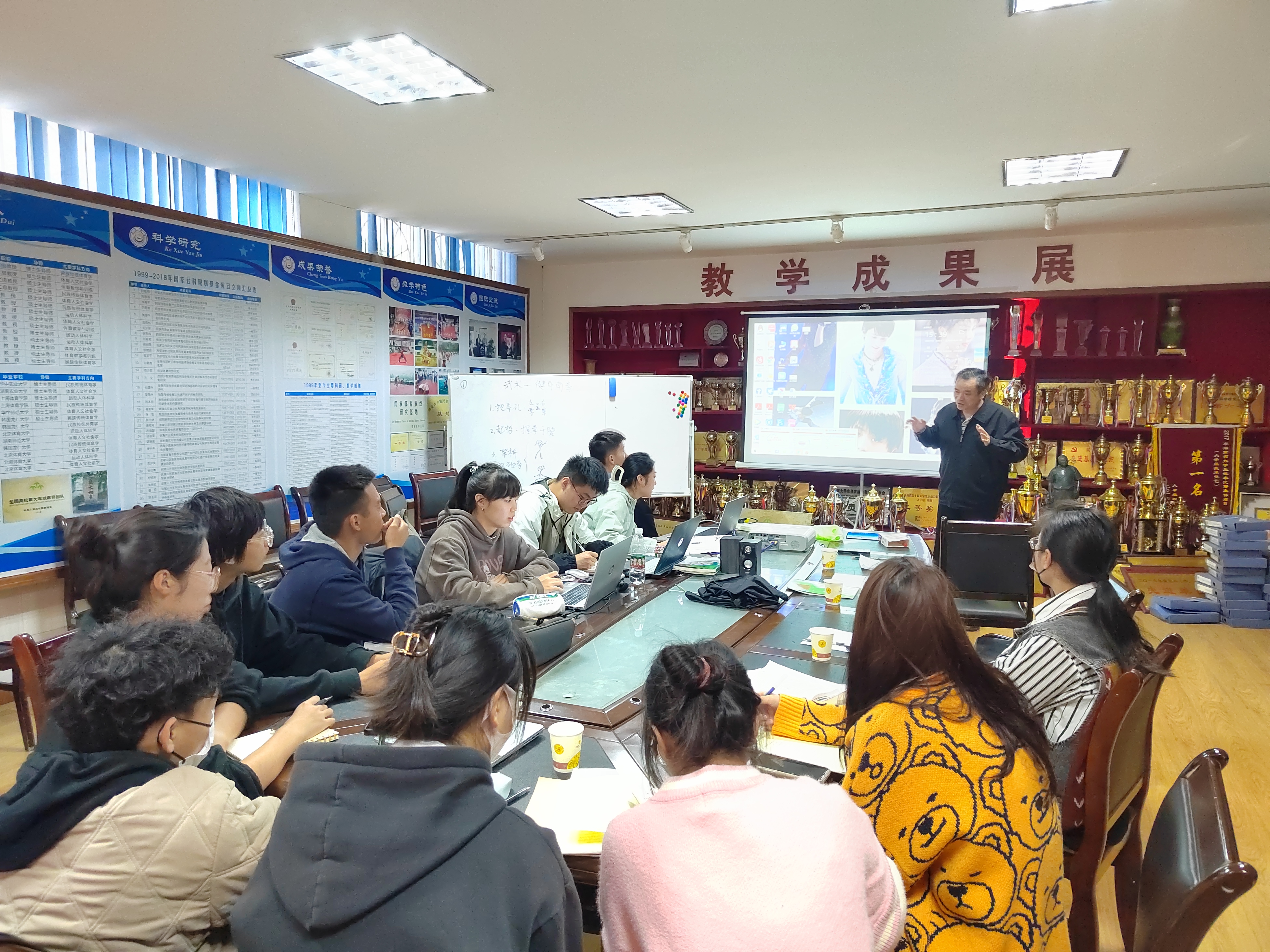 培训团队由培训经验丰富的张天成教授、张福兰教授、唐君玲副教授三位指导老师和2021级、2022级、2023级部分员工组成。从今年5月份院赛结束之后,培训团队就开始积极备赛。暑假开始第一轮培训,以线上培训为主,每周过1个项目,老师们线上给予指导。本学期开学之初进行第二轮培训,11个大项一个一个的进行反复打磨,指导老师们就师范教学技能比赛的教育问答、片段教学、教学设计、PPT、板书五个环节分别给出具体改进意见,不断进行优化。省赛前半个月开始第三轮培训,每个项目都按照正式比赛的要求进行模拟,指导老师们连续11天对每个大项的五个环节的模板一一给予审定,反复打磨,最终形成了丰富的培训资料,为学院师范生教学技能的培训提供宝贵借鉴。
