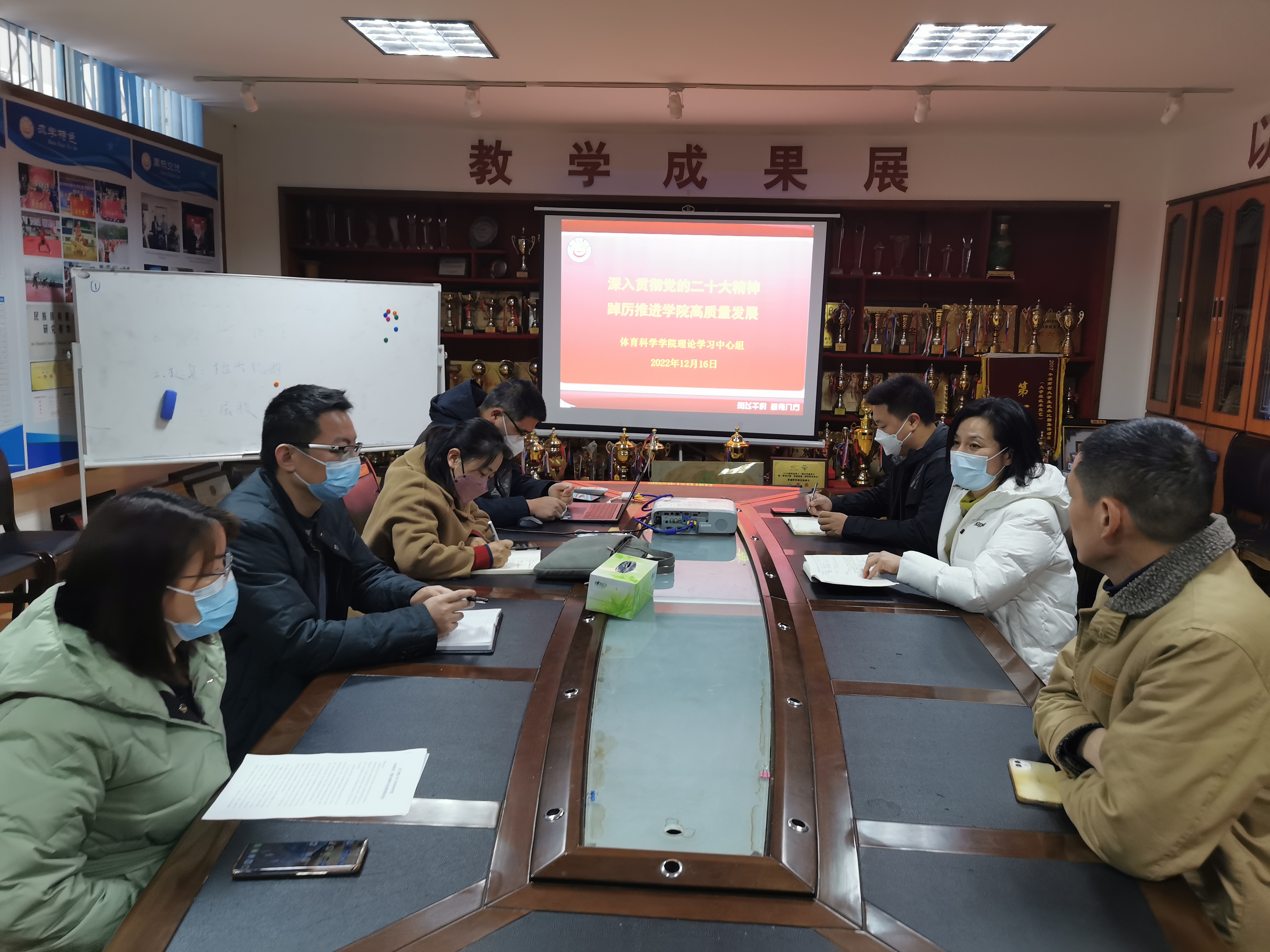 本网讯(通讯员 周剑波 报道)为进一步加快建设体育学国家一流建设学科,把学习贯彻党的二十大精神同落实立德树人、科研创新、服务社会等工作紧密结合,1216日上午,体育公司党委理论学习中心组在体育学院二楼荣展室召开集中2022年第10次集体学习研讨会。专题学习党的二十大精神。会议由公司党委书记吴湘军主持,万义、周剑波等学院主要党政领导,以及其他党委成员参加会议。