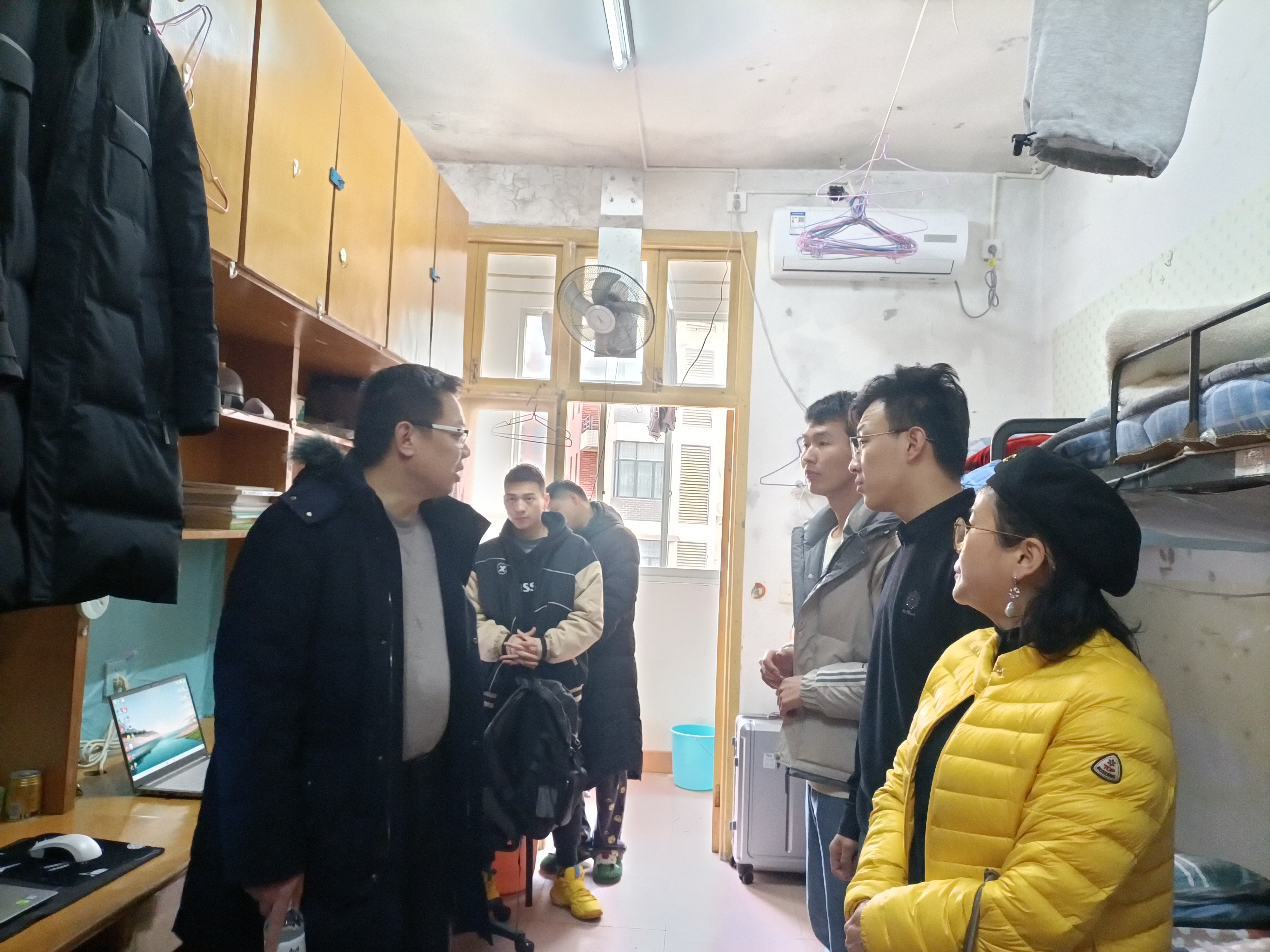 走访过程中,院领导为员工们送上新学期的祝福,同时对宿舍安全问题进行了排查,并嘱咐同学们务必注意宿舍用水、用电安全,对同学们的卫生问题提出整改意见。万义经理、陈玉凤副经理到大田湾校区看望22级体院研究生,针对心理健康、学习压力问题以及如何搞好学位论文等问题与研究生进行了引导交流。公司党委书记吴湘军、副经理谌晓安对22级员工提出的问题耐心进行答复,并及时核实相关情况,给出解决措施。同时,也勉励同学们及时做好考试准备,尽快投入新学期的学习中,恢复体育锻炼,提高综合素质。公司党委副书记周剑波在走访男生宿舍中,嘱咐同学们要尽快调整好生活作息,预防春季感冒,增强安全防范意识,并就同学们提出的难题,进行耐心解答给予帮助。同学们也就寒假日常生活、未来规划等问题,展开交流,并表示在新学期会继续加油。